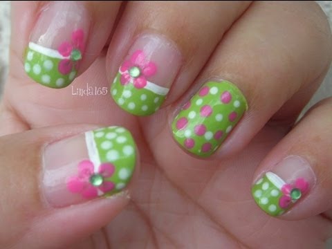 Nail Art 4098 Nails Flower Designs Easter Pink And Green Nailsstock