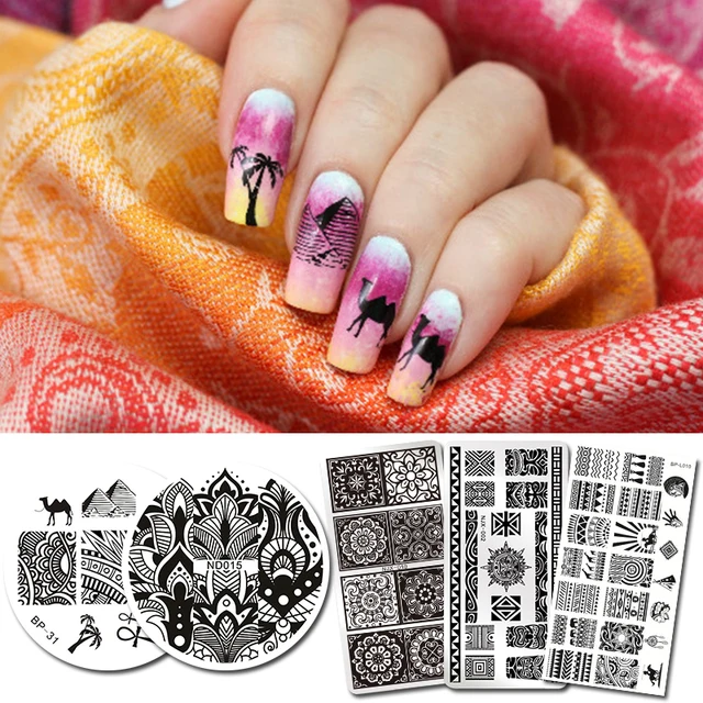 5pcs Ethnic Style Stamping Template Set Round Rectangle Nail Art