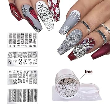Amazon Com Micup Nail Stamping Plate Kits 4pcs Stainless Steel