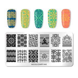 Details About Nicole Diary Nail Stamping Plates Buddhism Temple Rectangle Nail Art Plate 045