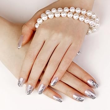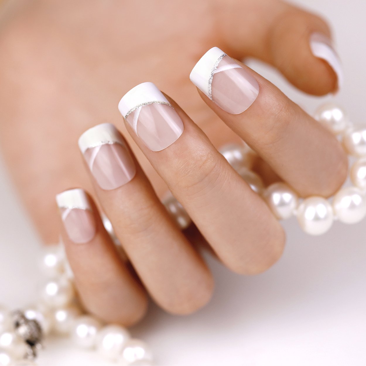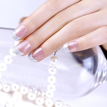 Amazon Com Artplus 24pcs Snow Sparkle Elegant Touch False Nails