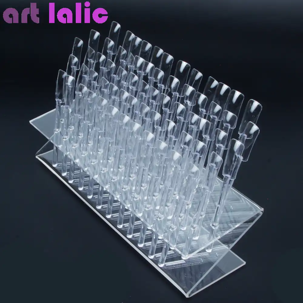 64 Tips Pop Sticks Nail Art Clear Tips Display Stand Nail Polish