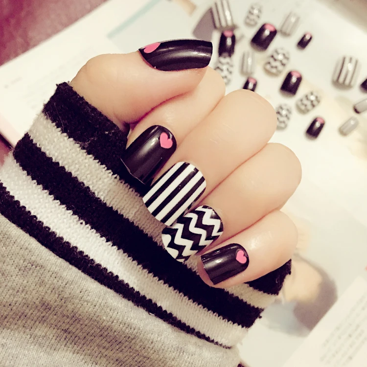 24 Stucke Nail Art Produkte Fashion Black Stripes Falsche Nagel