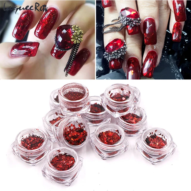 12 Styles Red Nail Glitter Pigment Powder Holographic Dust Manicure