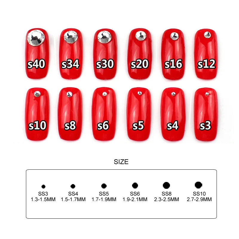 Nail Art Rhinestones Sizes