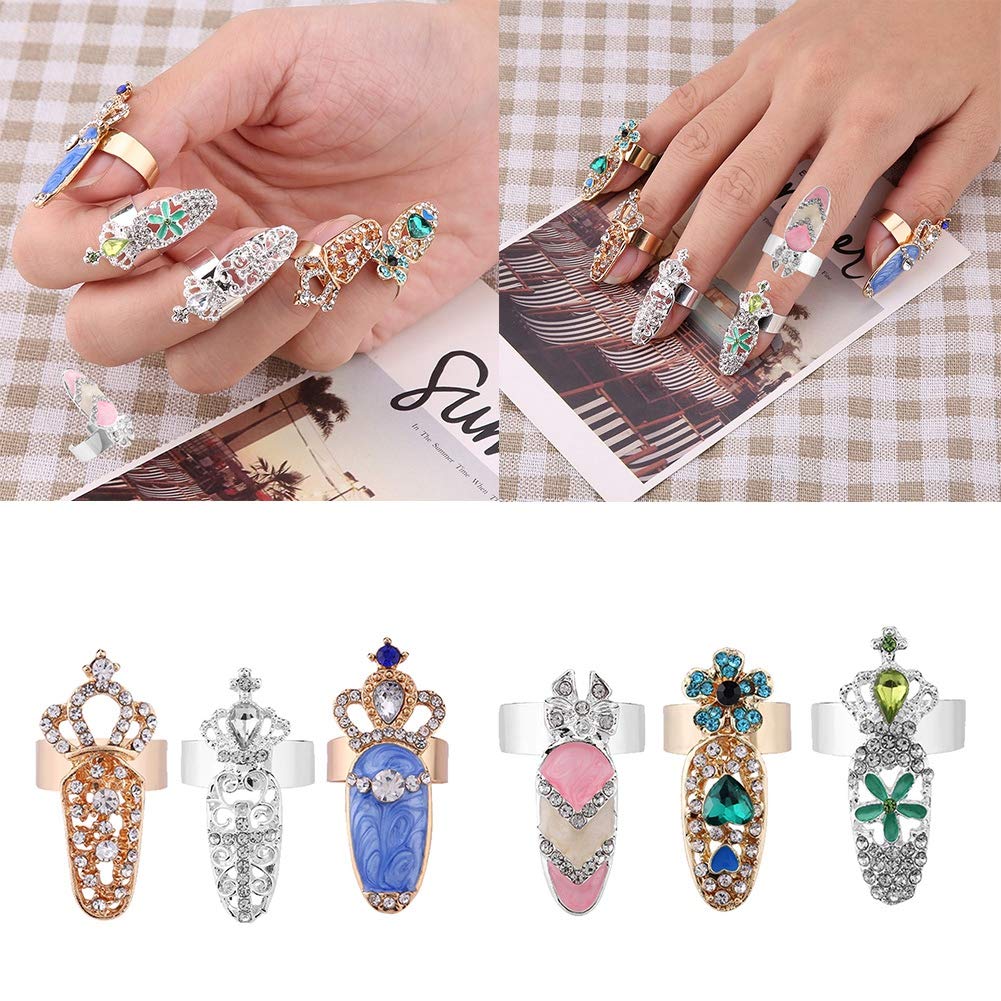Amazon Com 1pc Finger Nail Art Design Ring Fake Nails Crystal