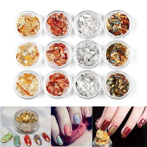 12 Vasetto Nail Art Rosa Oro Argento Paillette Flake Chip Foil