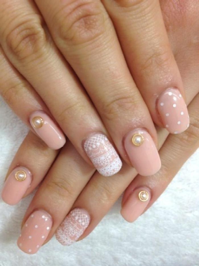 Ongles Rose Clair Avec Arabesques Ongle Bille Blanche Ongles