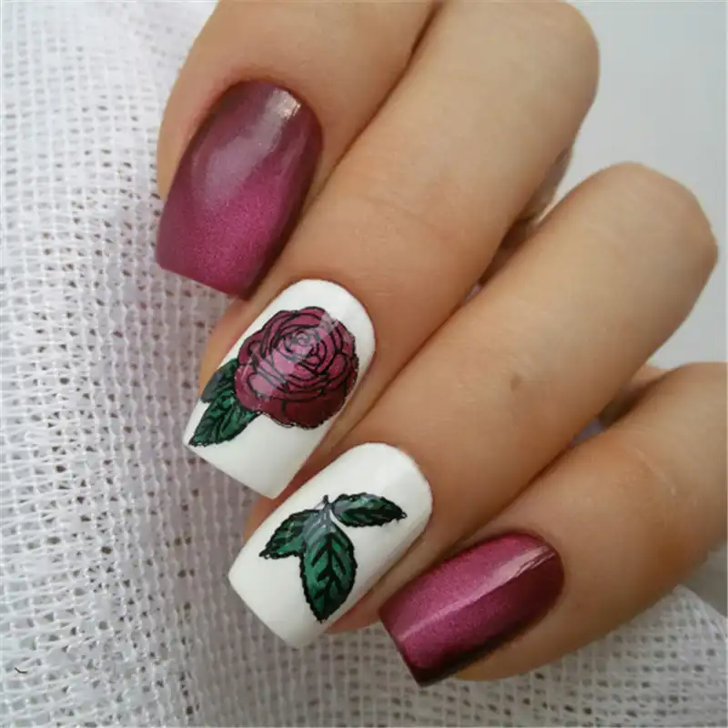 I think i mastered it here. Some of them are also half naked. Check out this aquarium nail. You can use nail extensions or nail art decals to do rose nail art like this one.