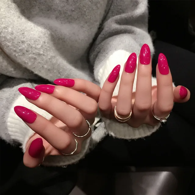 24pcs Set Spring Long False Nail Rose Red Pretty Women Nail Art