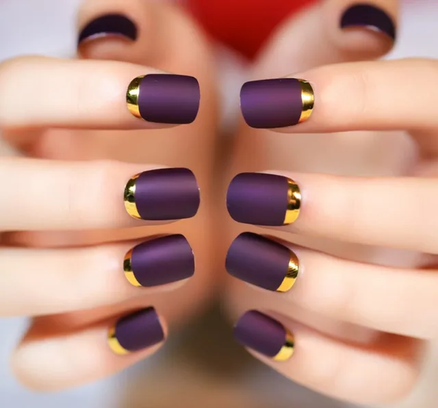 24pcsnatural Purple Nail Art Round End Oval False Nails Fake Nails