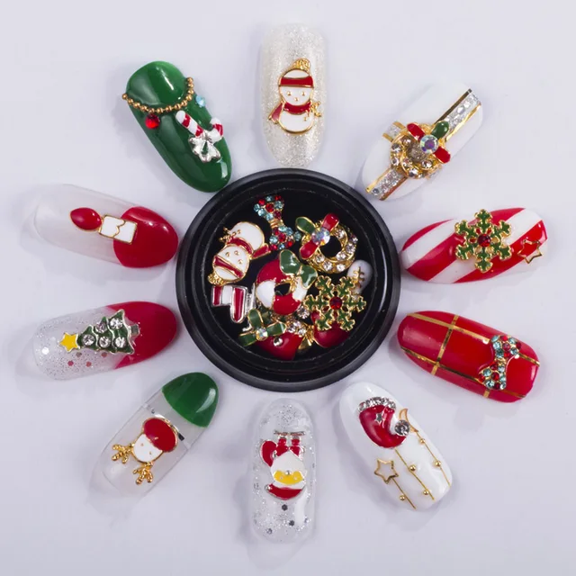 Alloy Diamond Nail Stick Christmas Snowman Tree Boots Bells Deer