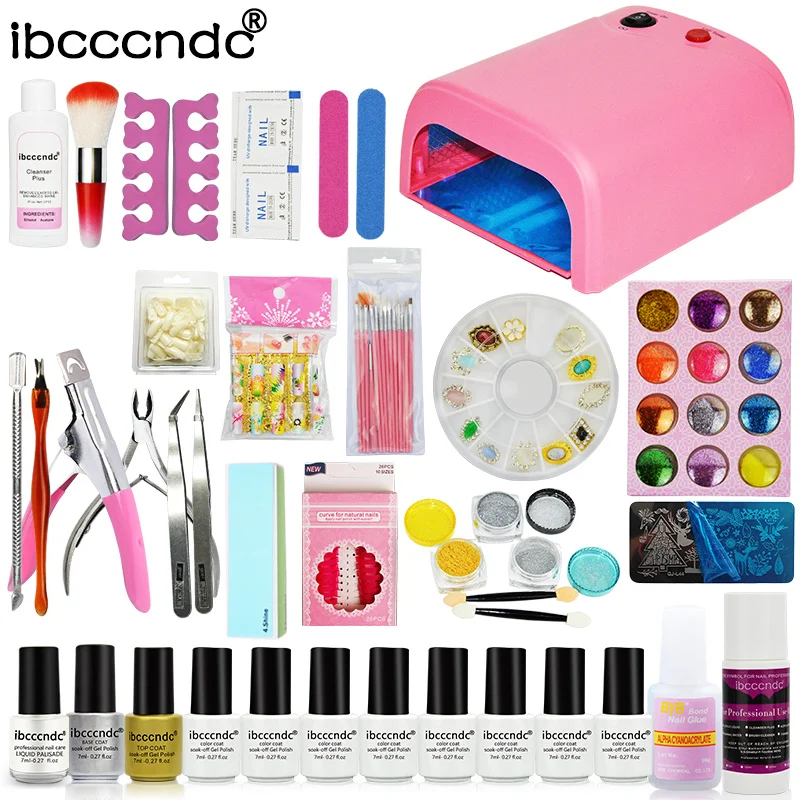 Pro Gel Polish Nail Art Set For Manicure 36w Soak Off Gel Nail Kit
