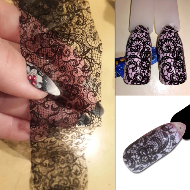 Us 0 5 30 Off 100cmx4cm New 2018 Black Lace Transfer Foil Nail Art Sexy Full Wraps Flower Glue Adhesive Diy Manicure Styling Tools Belb03 In