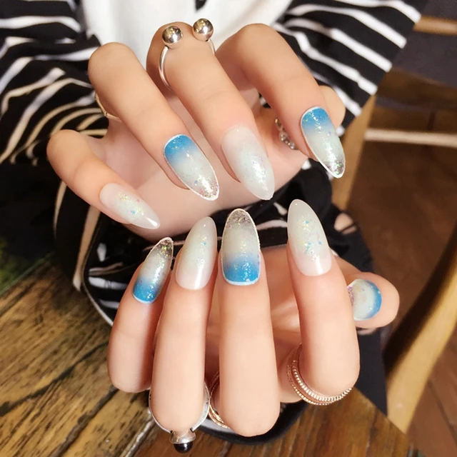 Cielo Stellato Unghie Finte Punto Blu Sfumato Top Falso Nail