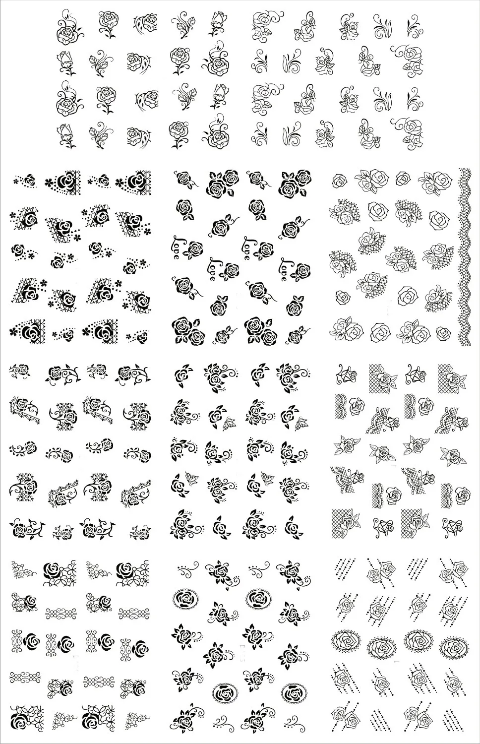 Nail Sticker Water Decals 55 Sheets Black White Lily Rose Flower