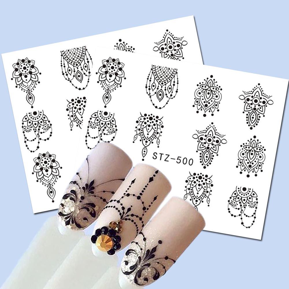 1 Sheets Watermark Sexy Nail Art Black Flower Chain Pendant Pattern