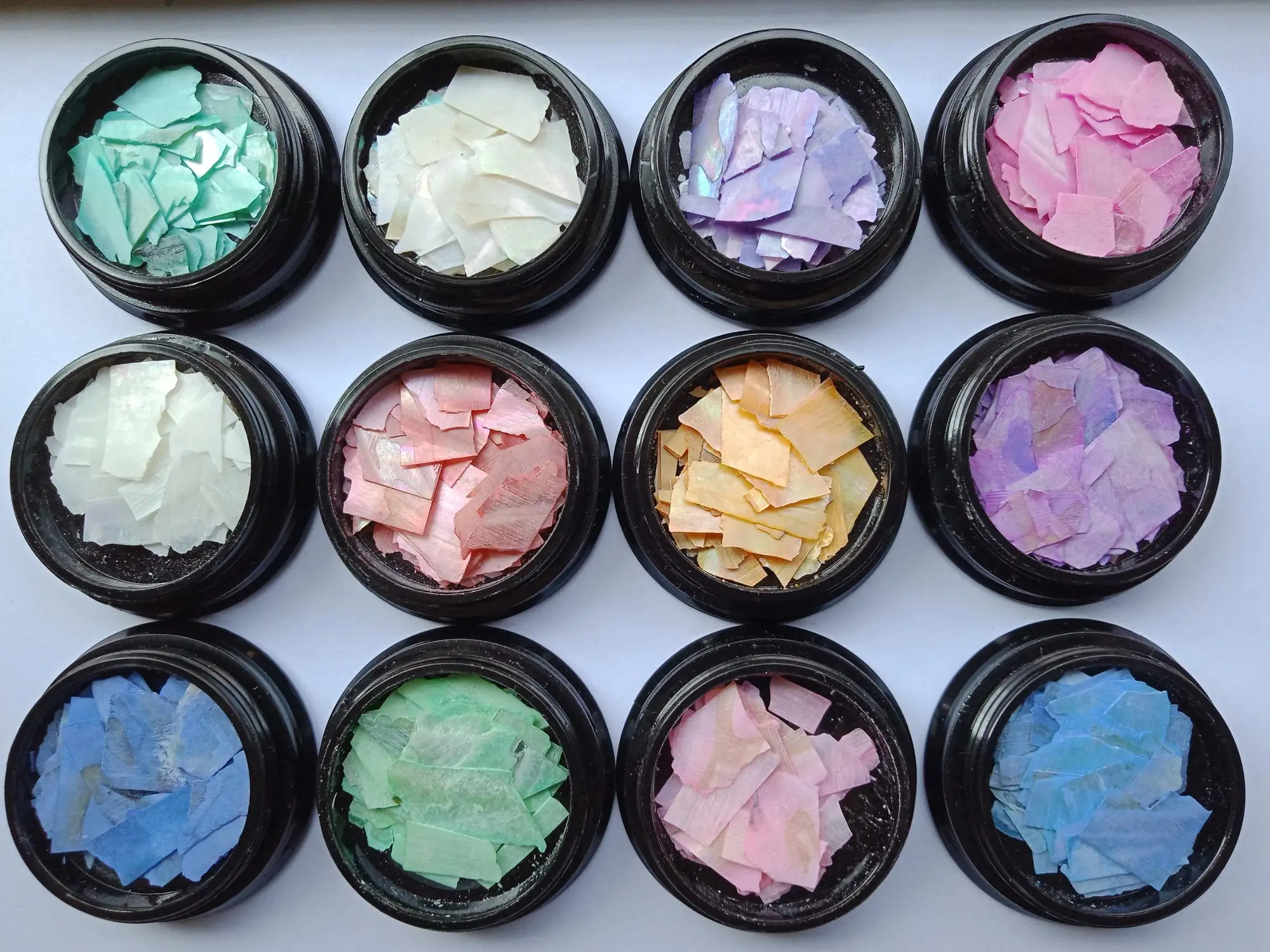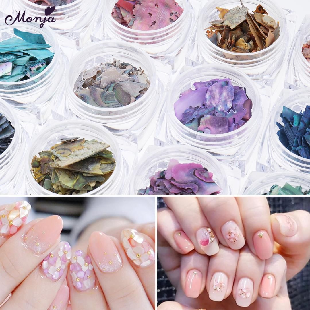 12 Jar Set Natural Colorful Pearl Light Nail Art Shell Super Thin