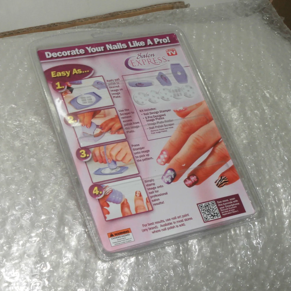 As seen on tv salon express. Hollywood nails as seen on tv invented. Salon express nail art stamping kit features. Not for children under 3 years.