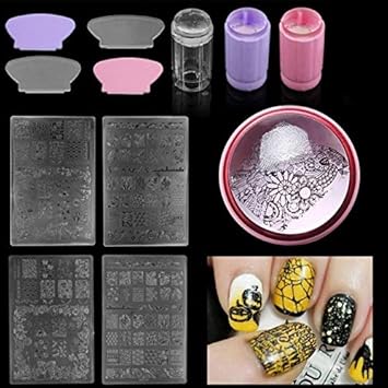 Details About 6pcs Nail Art Stamping Plates Polish Print Templates Stamp Stamper Scraper Kit