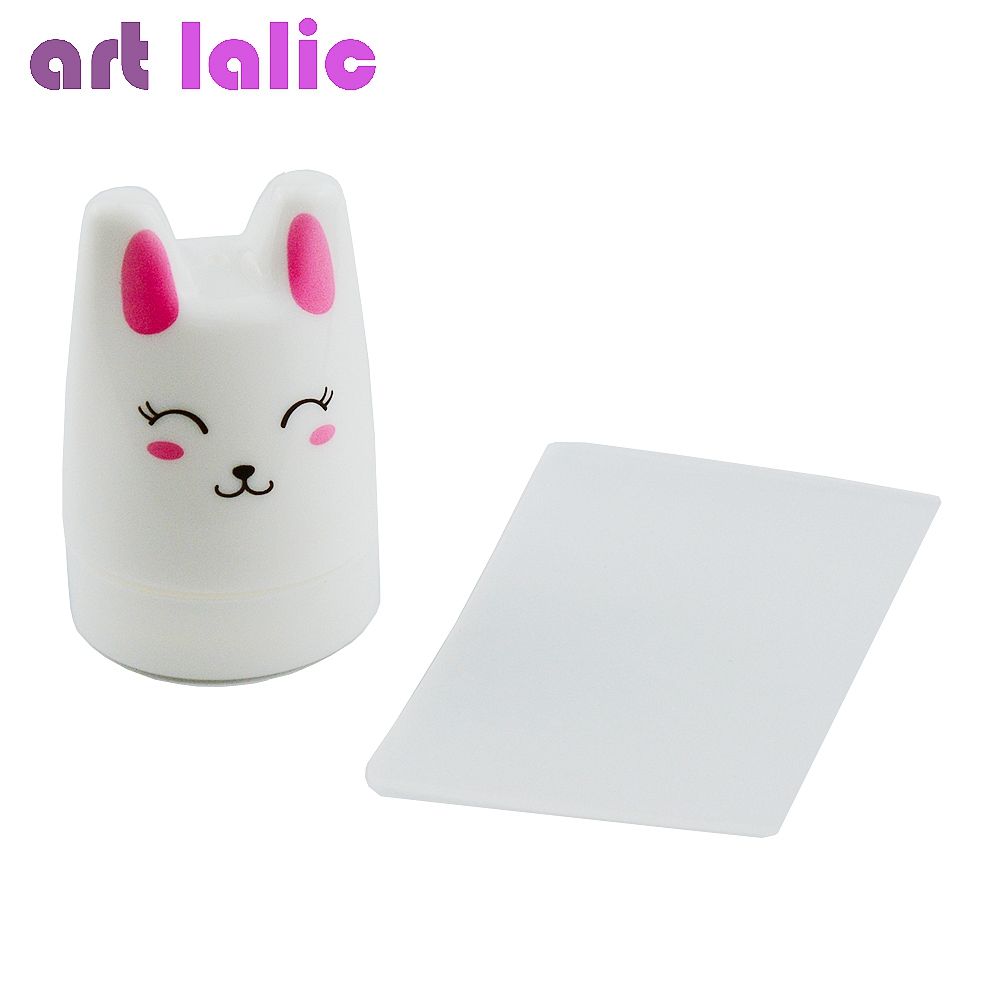 1 Set Cute White Rabbit Soft Silicone Print Template For Nail Stamp Plates With Nail Scraper Diy Art Stamping Tool