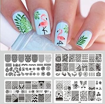Amazon Com Cattie Girl 4pcs Flamingo Summer Nail Stamping Plates