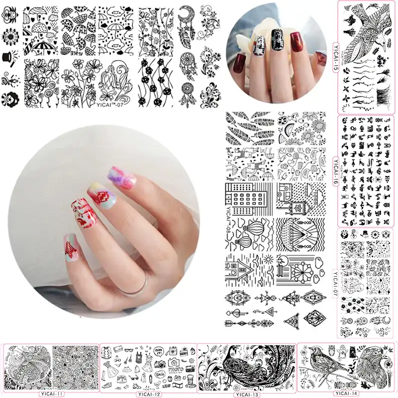 10pcs Professional Nail Stamping Plate Set Yicai 21 30 Lace Accessories Nail Art Stamping Image Plates Diy Template Nail Tool