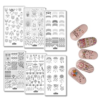Nicole Diary 5 Pcs Nail Stamping Plates Set Typography Tattoo Dreamcatcher Romantic Series Nail Art Stamp Template Image Plates