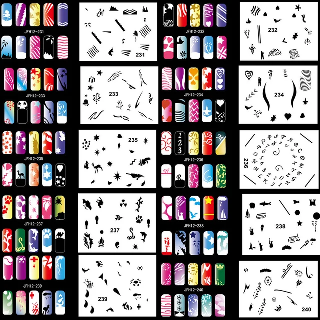 Set 11 260 Airbrush Nail Art Stencil Designs 20 Template Sheets Kit