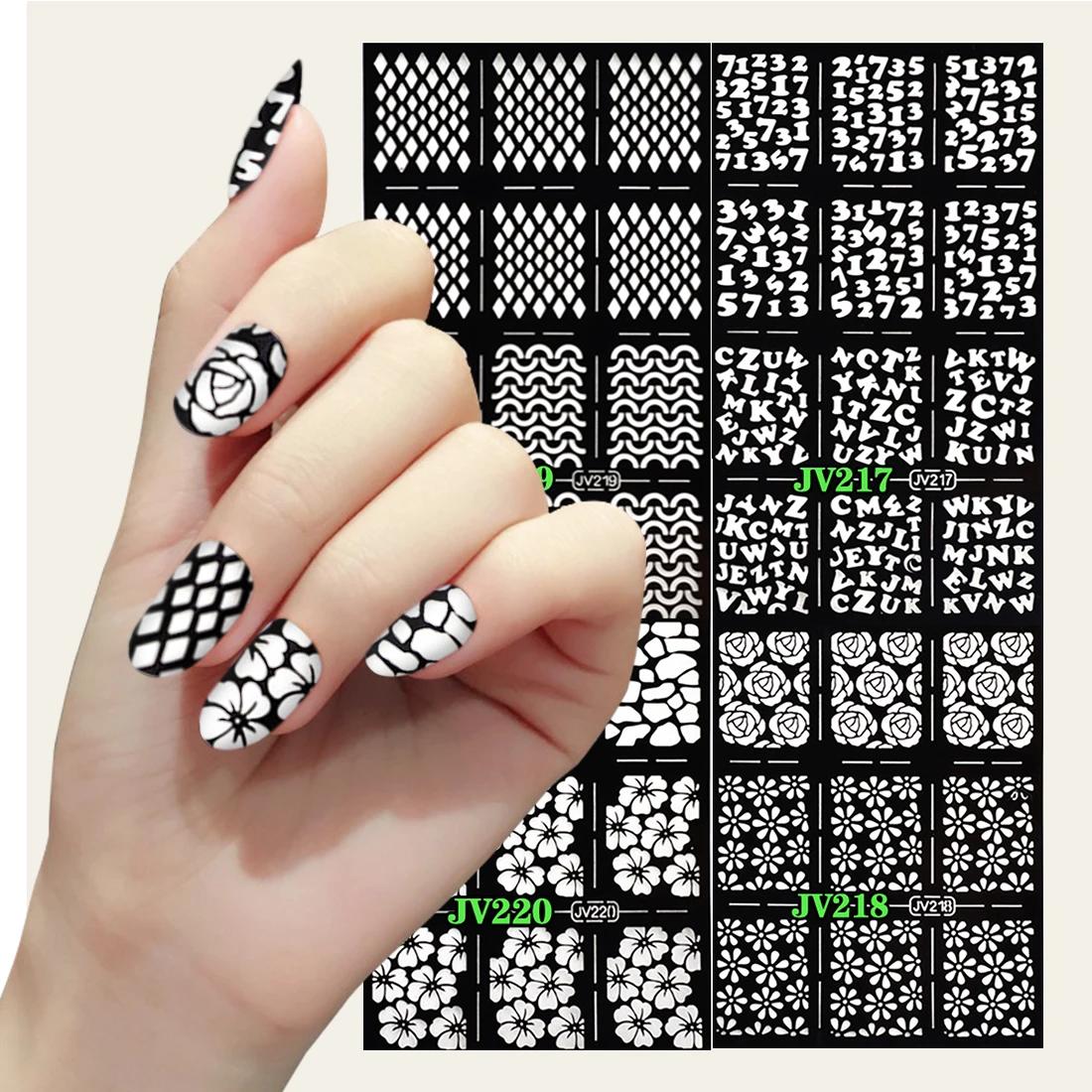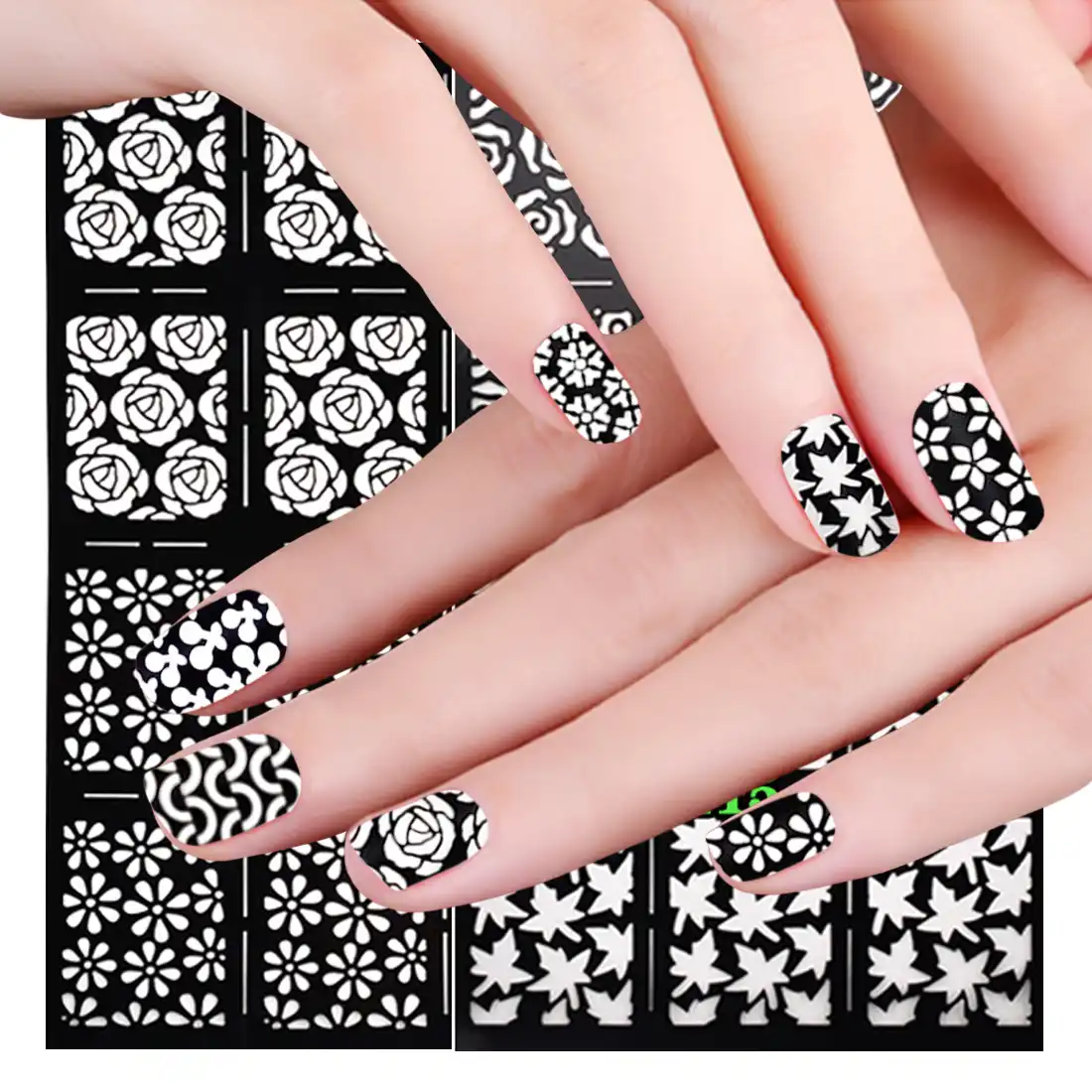 This shopping feature will continue to load items. Nail stencils or nail art stencils are just like stencils used to paint designs on a wall or letters on a sign but on a much much smaller scale. Nail art design practice templates or sheets all versions. Ejiubas 144 pieces 24 different designs nail vinyls nail stencil sheets easy nail art nail guides nail stickers set 12 sheets 37 out of 5 stars 141.