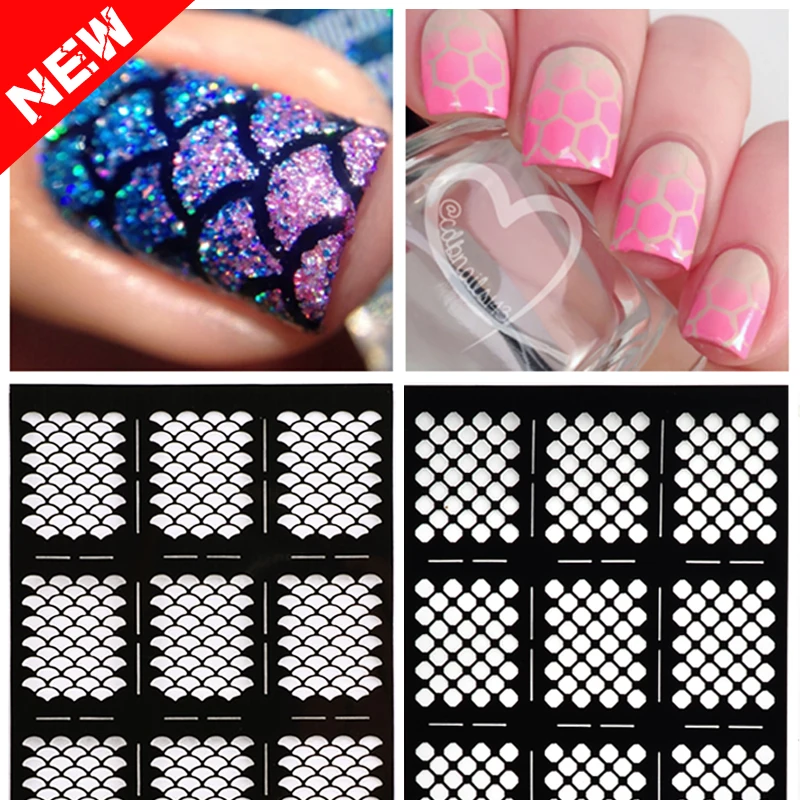 Nail Art Stencils Vinyl Hollow Stickers Decal Manicure Tips Stamp