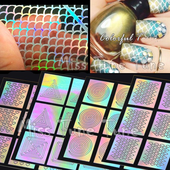 12 Styles Pack Nail Vinyls Stencils Nail Art Stickers Multiple Etsy