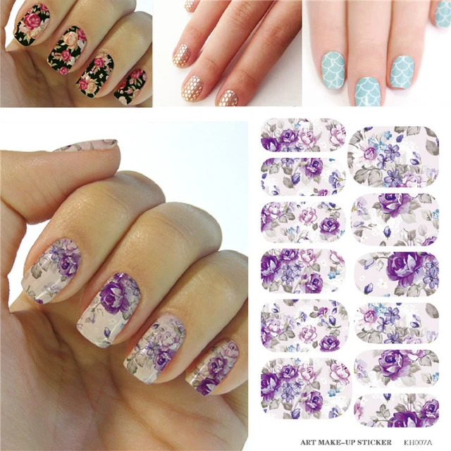 Us 0 59 Water Transfer Nails Art Sticker Full Cover Manicure Acrylic Nail Wraps Foil Decals Purple Floral Pink Flower Design Nail Tools In Stickers