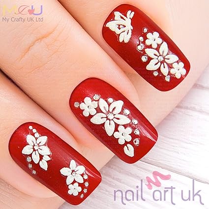 My Crafty Uk Ltd White Flower Rhinestone Flowers Nail Art Decal