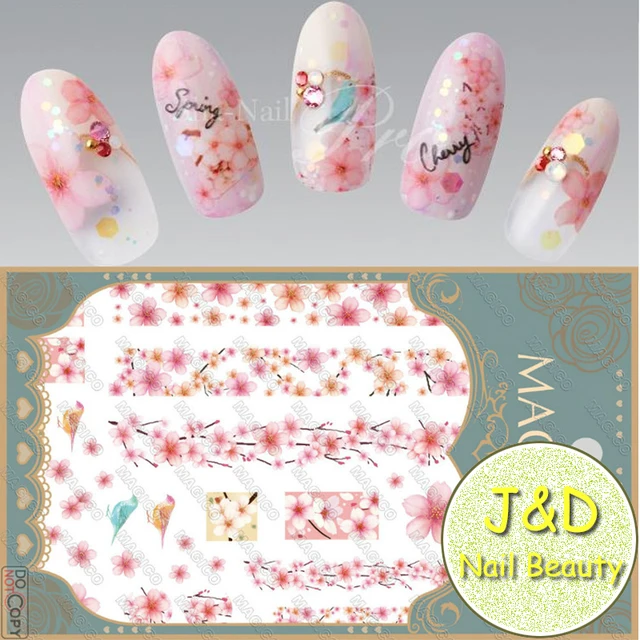 Wholesale 24pcs Comic Pink Sakura Nail Art Sticker Cherry Blooms