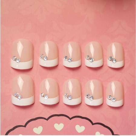 Acheter Set Simple Rose Francais Faux Ongles Court Strass Rond