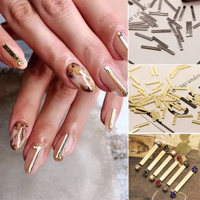 Online Shop 50pcs 3d Bright Gold Black Color Punk Metal Long Strips