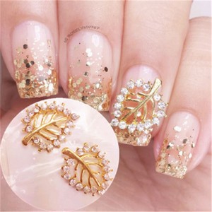 2pcs 3d Hollow Leaf Design Nail Art Stud Rhinestone Manicure