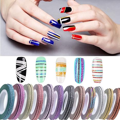 Buysky Nail Art Tape 16 Pcs Glitter And Metallic Color Stripes