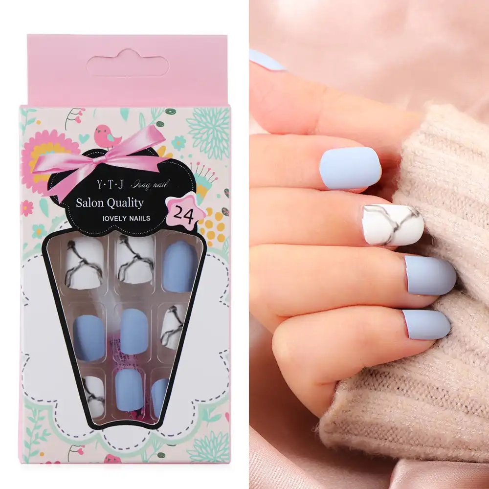 Detail Feedback Questions About 24pcs White Light Blue Fake Nail