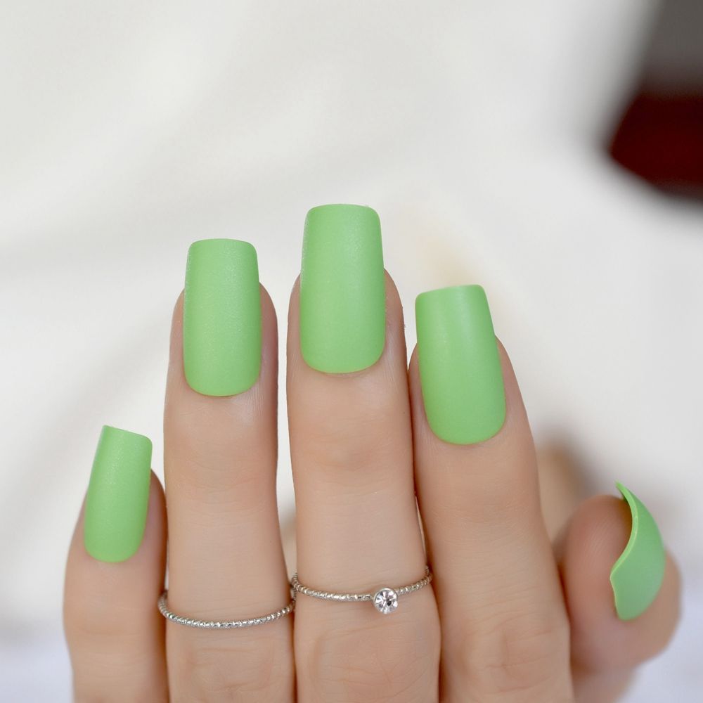 Medium Matte Green Nail Art Tips Full Cover Square Artificial False