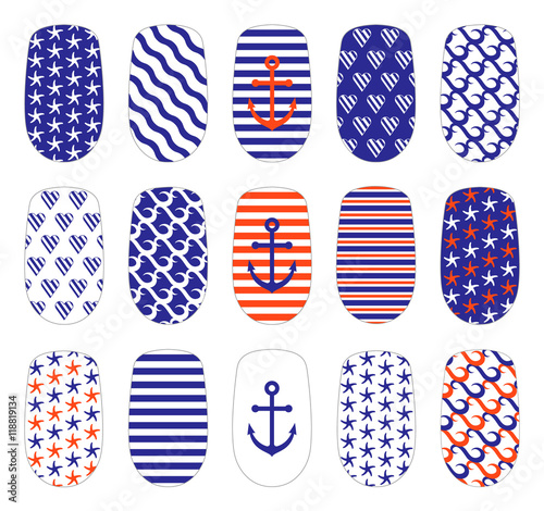 Nail Art Marine Style Templates Manicure Design Set Can Be Used