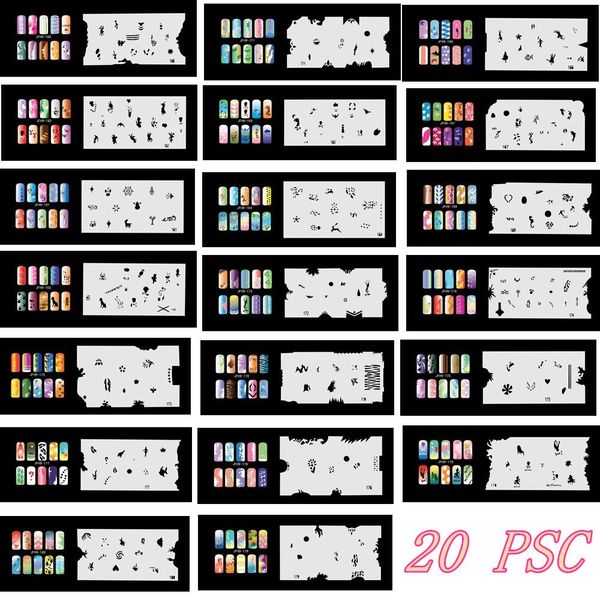 2017 New Arrival 20 Psc Airbrush Nail Stencil Sheets Design Art