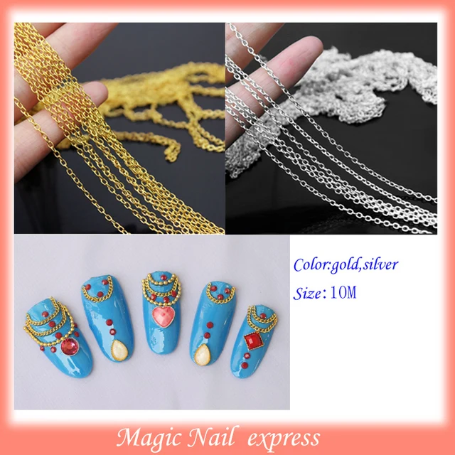 10m Punk Gold Chain Acrylic Nails Tiny Line Design Diy Decoration