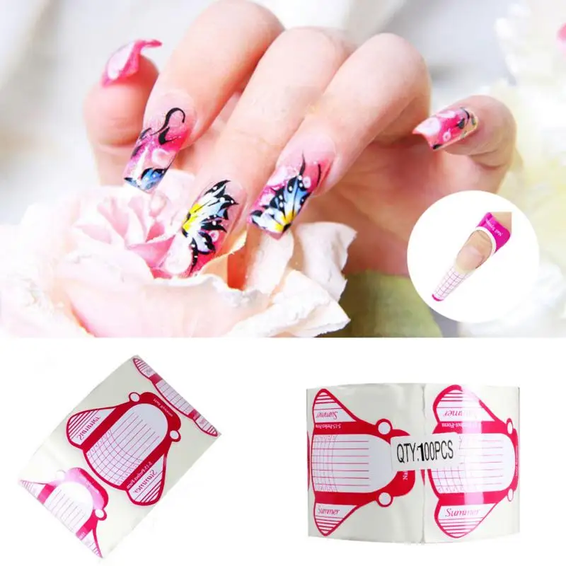 100pcs Nail Art Tips Extension Forms Guide French Diy Tool Acrylic