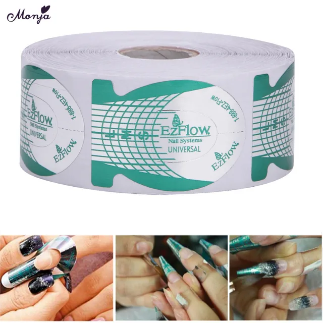 Monja 500pcs Roll Nail Art Tip Green Extension Form Stickers Gel