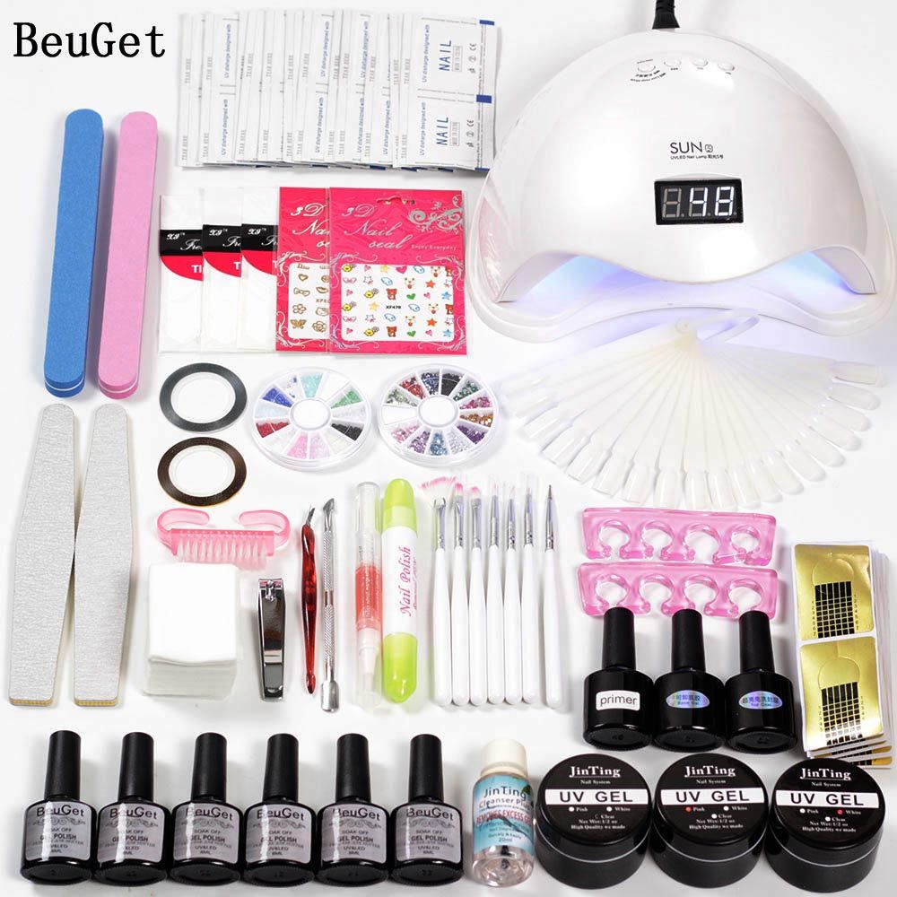Nail Art Tools Uv Gel Kits With Lamp 6w 48w Led Curing Nail Polish