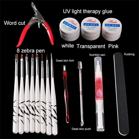 Nail Art Tool Kit Manicure Set For Beginners 12 Color Uv Gel 8 Zebra