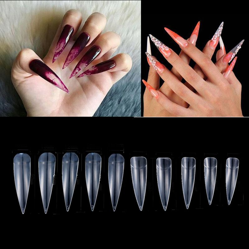 Nail Art Transparent Half Cover Oval Sharp End Stiletto Long False