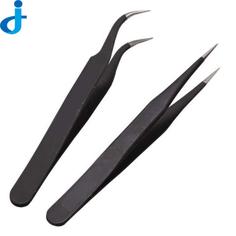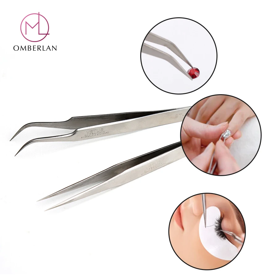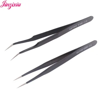 2pcs Nail Art Tweezers Traight And Curved Pointed Tweezers
